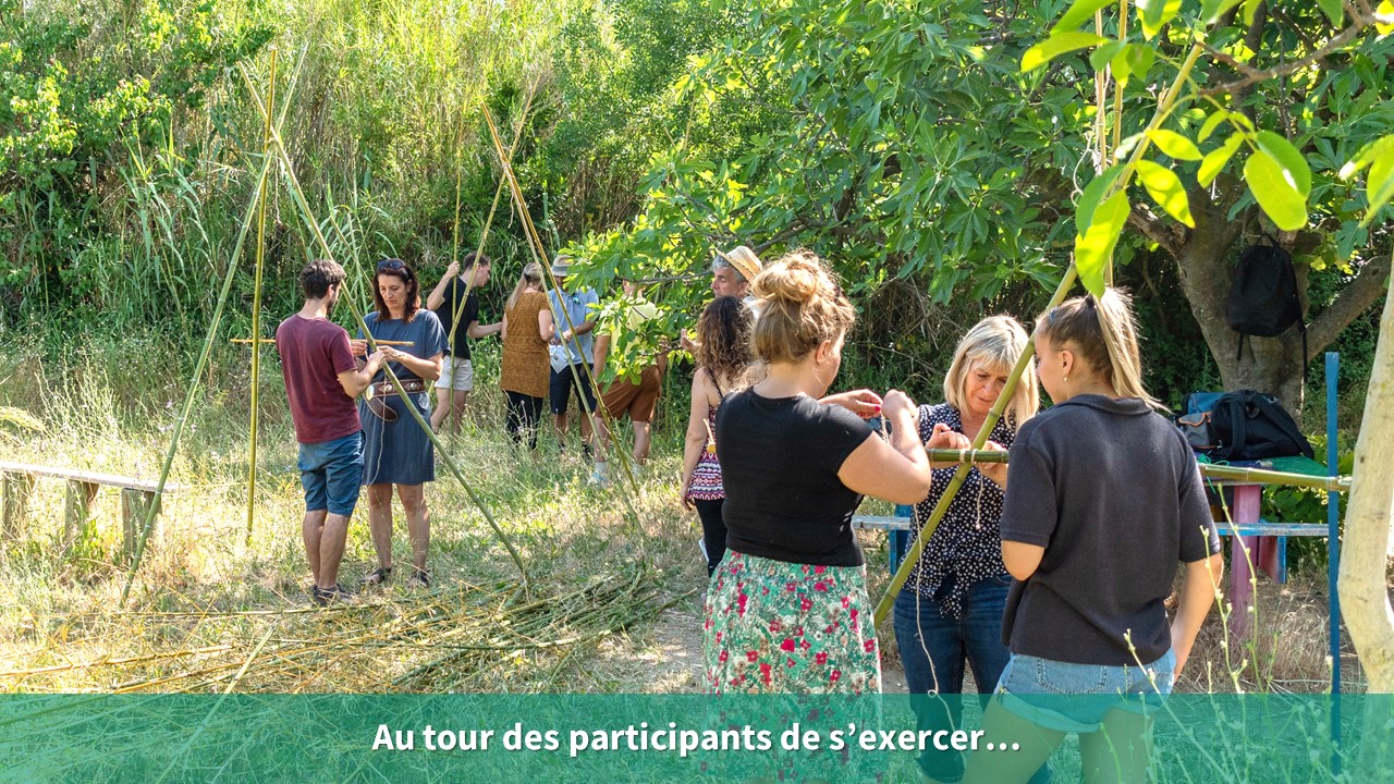 Les agents en charge de l’enfance et de la jeunesse de Montpellier Méditerranée Métropole sont venus découvrir et apprendre les principaux nœuds ainsi que des techniques d’assemblage de bois sans clous ni vis.