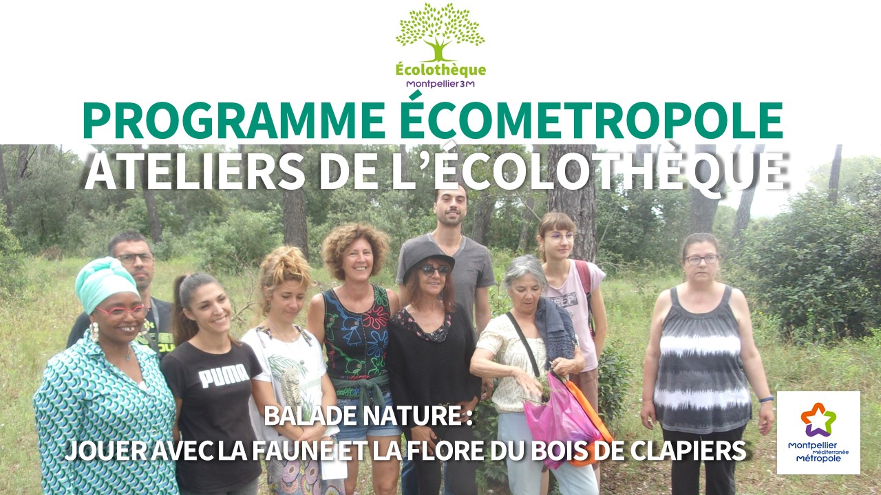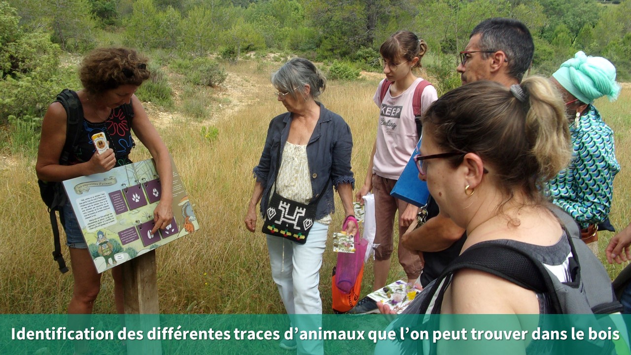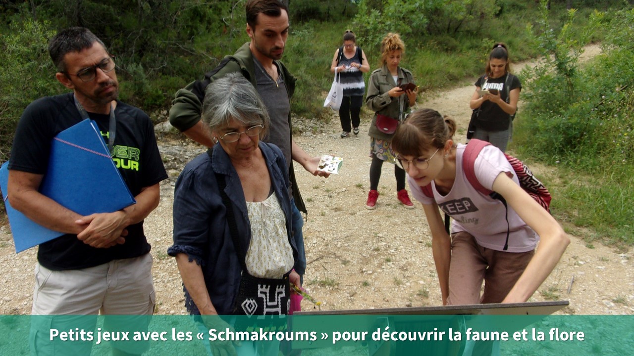 Le mardi 13 juin 2023, Thierry Fillet, animateur de la commune de Clapiers nous a fait découvrir le sentier du jeu de piste des Schmakroums dans le bois de Clapiers. Ce sentier initié par les animateurs et enfants de la commune permet, pendant une balade d’une heure, de découvrir la faune, la flore, la géologie du bois de Clapiers de façon très ludique. Tout au long de la randonnée, les 6 participants se sont appropriés des petites activités pour rythmer le parcours : le sac à trésors, la palette du peintre, le « kim vu » des plantes, la carte sonore, le grand jeu du foulard. Certains ont découvert l’application « Plant net » pour connaitre le nom des plantes… L’atelier s’est terminé autour du pot de convivialité offert par la commune permettant de nombreux échanges entre les participants. Toute l’équipe en profite pour remercier Sylviane de son investissement sur le programme ÉcoMétropole. Nous lui souhaitons une bonne retraite !