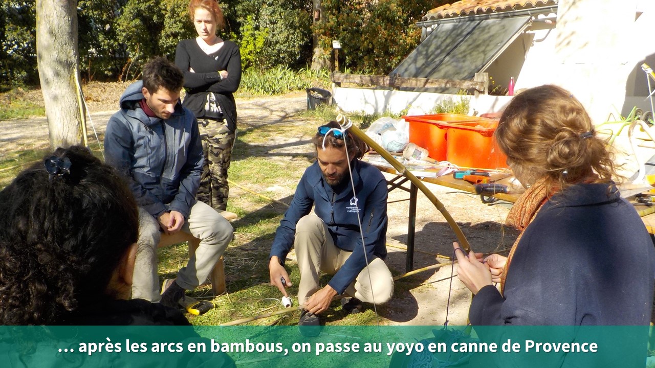 Le mardi 04 avril, 9 participants se sont initiés au travail du bois sur du bambou et de la canne de Provence. Chacun a pu manipuler les différents outils (couteaux, scies…), tout en respectant les consignes de sécurité indispensables à un atelier de bricolage avec un groupe d’enfants. Après avoir rassemblé les éléments nécessaires, ils ont pu réaliser différents jouets : des arcs et leurs flèches, des sifflets ou encore un yoyo. Les participants pourront mettre en pratique ces techniques d’animation pour les enfants de leur commune et organiser des activités autour de la thématique brico-nature.