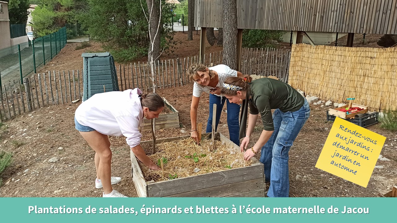 Les 1res pluies d’automne nous rappellent qu’il est grand temps de reprendre le chemin du jardin pédagogique. Le 1er rendez-vous aux jardins de cette saison s’est déroulé le 12 octobre 2023 à l’accueil périscolaire maternel de l’école de Jacou. Après une visite du potager et le partage des trucs et astuces pour faciliter le jardinage avec des très jeunes enfants, les participants ont appris le nom des outils du jardinier et la façon de les utiliser. Forts de cette expérience, ils ont préparé le sol, planté salades, épinards et blettes, semé des radis et des petits pois. La séance s’est terminée par le paillage et l’arrosage des bacs.