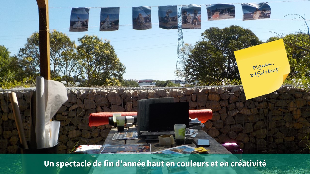 Les projets des jardins pédagogiques des communes de Cournonterral, Lattes, Grabels et Montpellier ont été mis en avant par une exposition de photos, tandis que les animatrices de Fabrègues et Pignan ont présenté leurs réalisations de tabliers, vêtements et chapeaux 100% récup’.