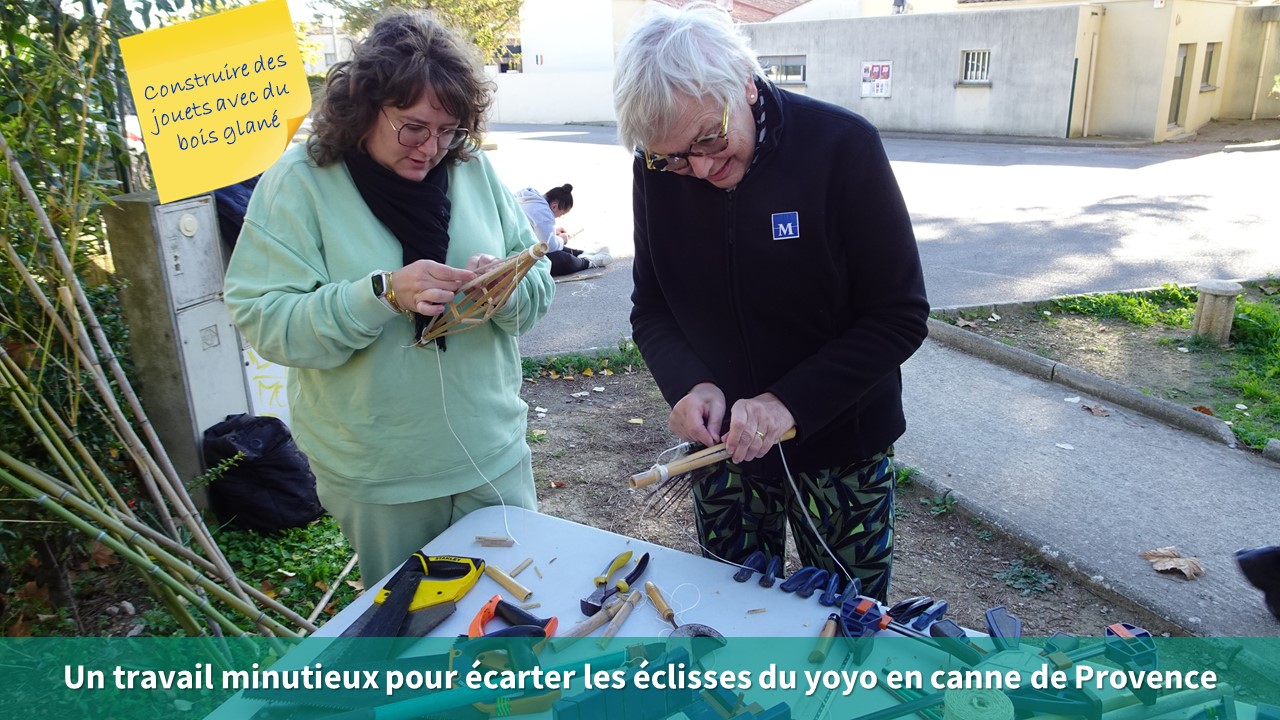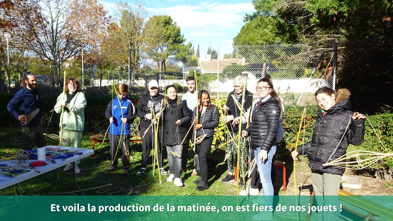 Souvent considérées comme des espèces indésirables, la canne de Provence et le bambou ont cependant bien des qualités ! C’est ce que nous avons pu découvrir lors de l’atelier de formation du mardi 21 novembre à l’école Joseph Delteil de Saussan. 14 participants représentant 4 communes ont pu acquérir des savoirs et savoirs-faire en construisant des jouets avec ces matériaux. Des objets ont pris vie : un yoyo et un arc avec ses flèches. Après avoir testé leurs créations, les stagiaires sont repartis avec toutes les techniques nécessaires pour pouvoir les reproduire avec leur public.