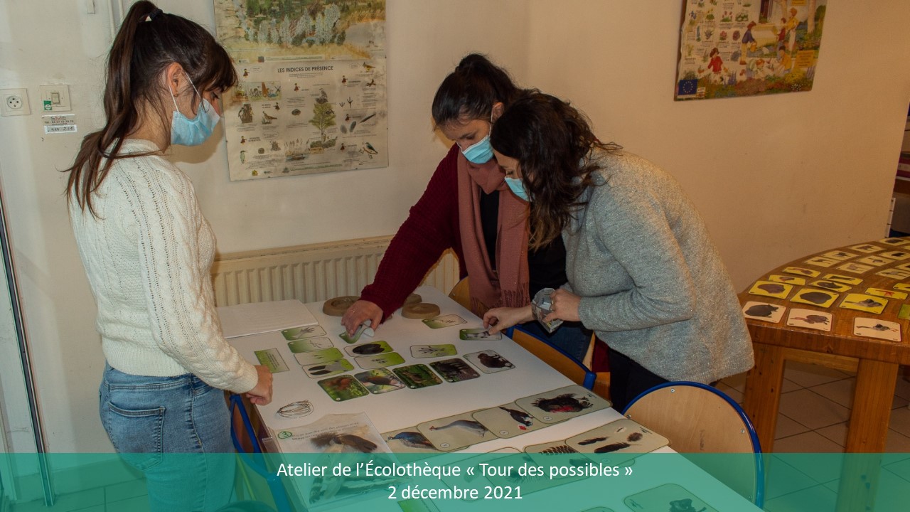 Le jeudi 2 décembre 2021, l’atelier « Visite de l’Écolothèque : tour de piste des supports d’animation EEDD » du programme ÉcoMétropole a réuni 7 agents éducatifs des communes de Montpellier et Baillargues. Ils sont venus découvrir le domaine et ses ressources pédagogiques pour initier des projets d’Éducation à l’environnement dans leur commune. La visite a débuté par la découverte de la médiathèque de l’Écolothèque, spécialisée en Éducation à l’Environnement et au Développement Durable (EEDD). Un rapide tour du domaine a permis de montrer des exemples d’aménagements réalisés sur des temps d’animation avec les enfants de l’Accueil de loisirs : jardin des couleurs, hôtel à insectes, mobilier en palettes, tour des aromatiques, espace floral en plessis… autant d’idées dont les participants pourront s’inspirer pour leurs propres réalisations. Des petits jeux extraits d’une vingtaine d’outils pédagogiques issus de la pédagothèque sur les thèmes de la biodiversité, du jardin, des déchets, de l’énergie, du bricolage et de l’eau, attendaient les participants pour compléter leur découverte sur l’EEDD. Pour retrouver le détail de cet atelier et des informations pour aller plus loin, la fiche « points clés à retenir » est à disposition. Un prochain atelier réseau du même type est prévu le jeudi 9 juin 2022 : un moyen de mettre en partage les idées, les outils pédagogiques et les aménagements pour développer des projets Nature-Environnement avec les enfants des communes de la métropole. Pour connaître toute l’offre de formation, consultez dès maintenant le catalogue 2021-2022 des Ateliers pédagogiques de l’Écolothèque.